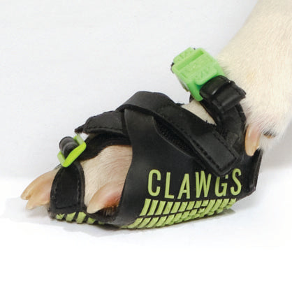 My dog has a wonky back foot, with one toe missing, and one toe nail growing up from the top of his foot. As a result, he steps on a part of his foot that doesn't have a pad, and his gait is different. Without the protection of a pad, his foot is susceptible to cuts and scratches. One nasty wound had me searching for custom dog boots, since I knew that every option I had seen ready-made would not accommodate his top nail. I discovered Clawgs, sent an email with my dog's particular needs, and heard back with custom advice immediately. I tried several sizes, to find the right fit and was able to return the sizes I did not keep at no charge. Sledd stayed in touch with me through the whole journey of adjusting straps to comfortably wrap his foot and even added velcro to his Clawg that allowed me to fasten it somewhat differently than a 4 clawed back foot would require. I love our Clawg that fits like a glove and Jackson loves that he can run on grass, scrub, concrete, stones, etc without injuring his wonky foot and having to stay inside while it heals.