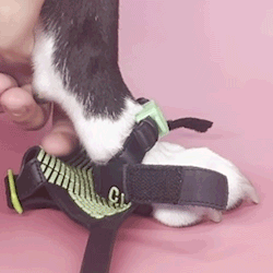 To do this, push Clawgs' heel straps down on paws until the paws' sides' bones' prevent the heel straps from sliding further down.