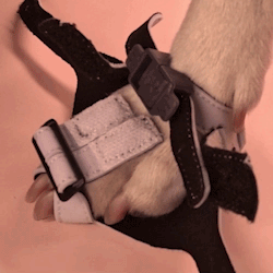 If you fully tighten side straps on laying dogs or lifted paws, they will be too tight when dogs stand because toes spread when dogs stand.