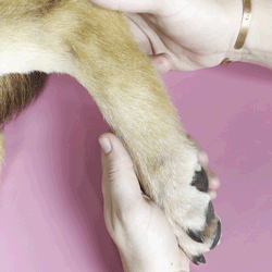 Toes spread when dogs stand. If you're fastening the side straps on a lying down dog or lifted paw, loosely fasten the side straps to account for standing toe spread.