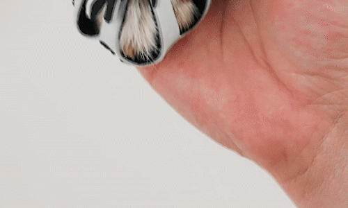 Clawgs V2 opens down the middle with our custom buckle. Clawgs open wide to make putting on and removing Clawgs simple. Most would agree that Clawgs V2 is easier to put on than shoving paws into small openings.